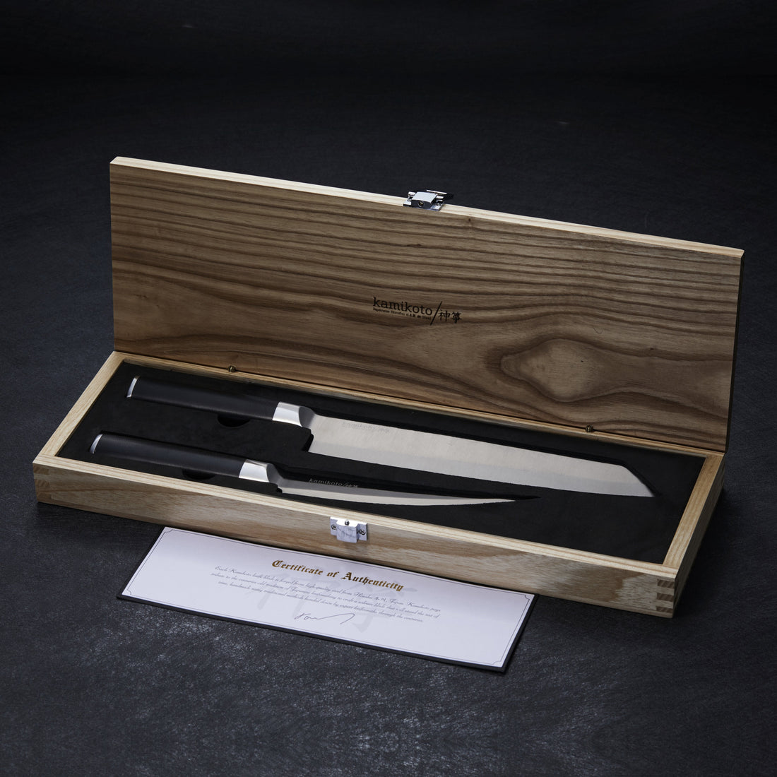 These Senshi dual knives complete my Kamikoto sets. The Honshu steel, craftsmanship, design and balance are perfect. I was a chef for 13 years and have many beautiful knives, but these are my favorites! I'll cherish them for life, and pass them to my next generation! Thank you Kamikoto!
